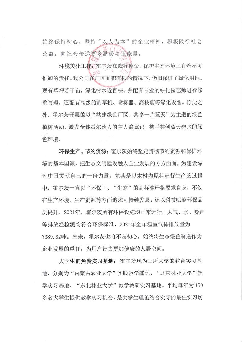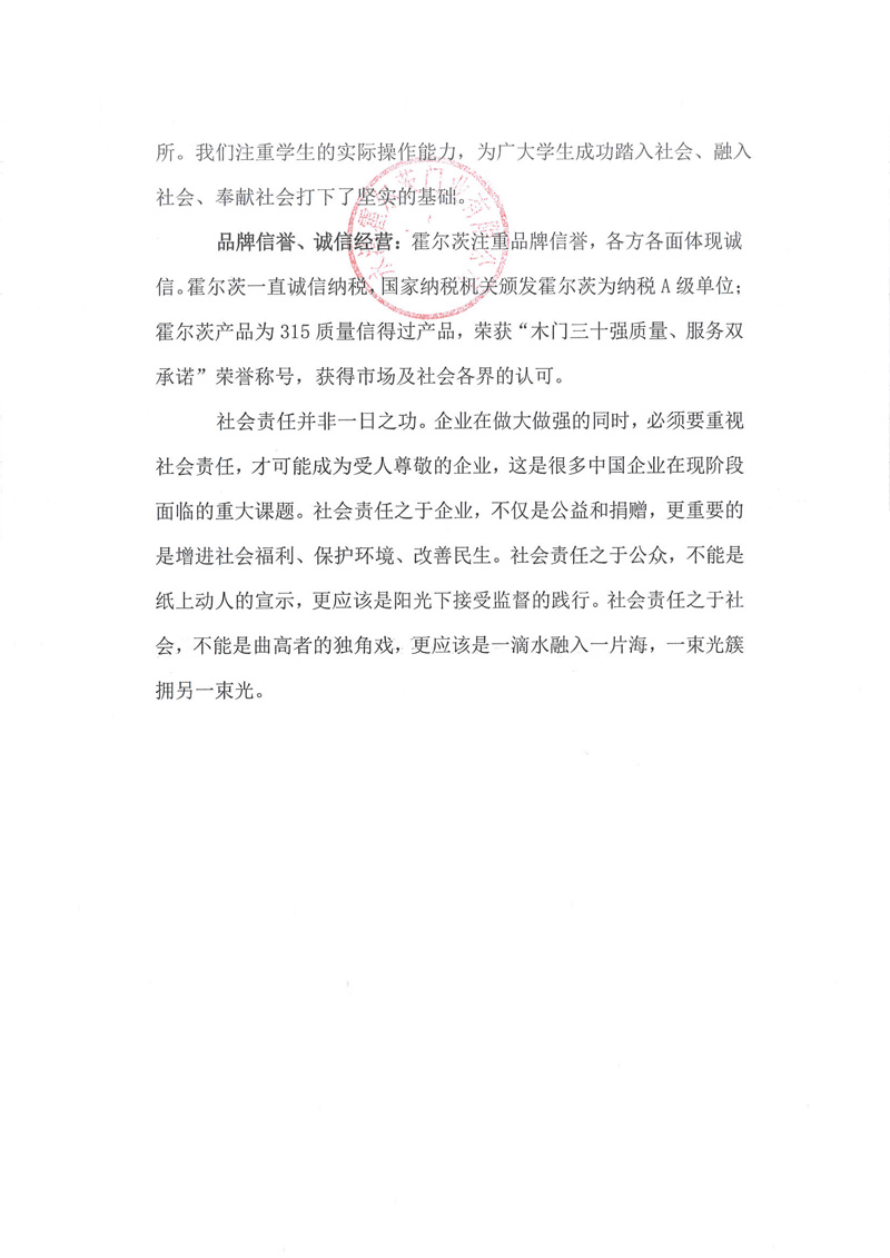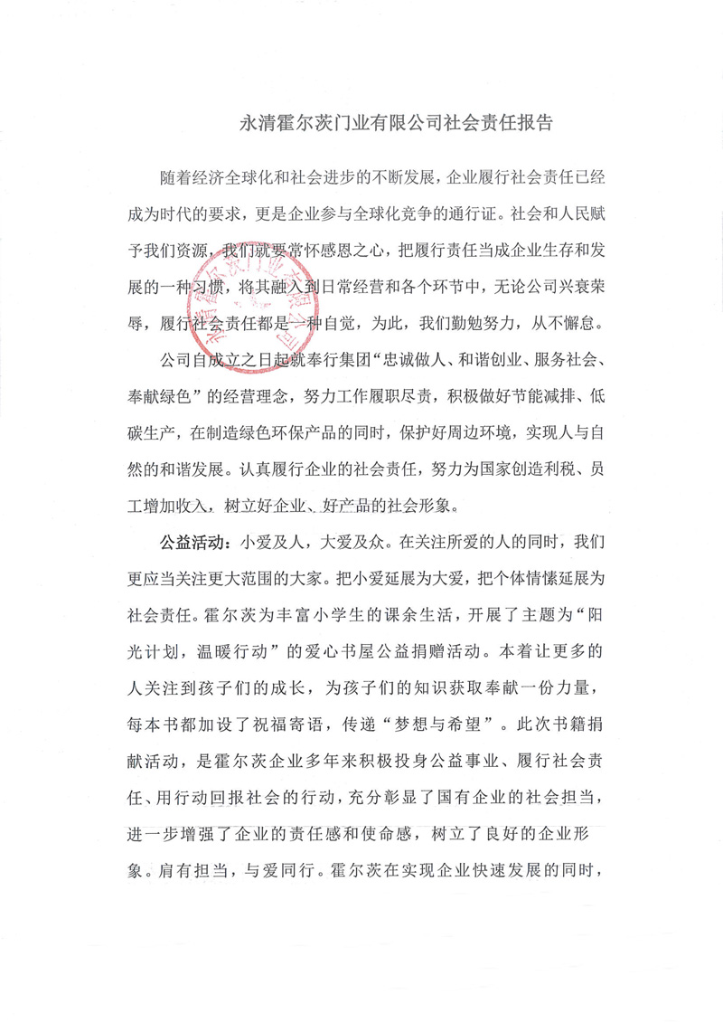永清霍尔茨门业有限公司社会责任报告