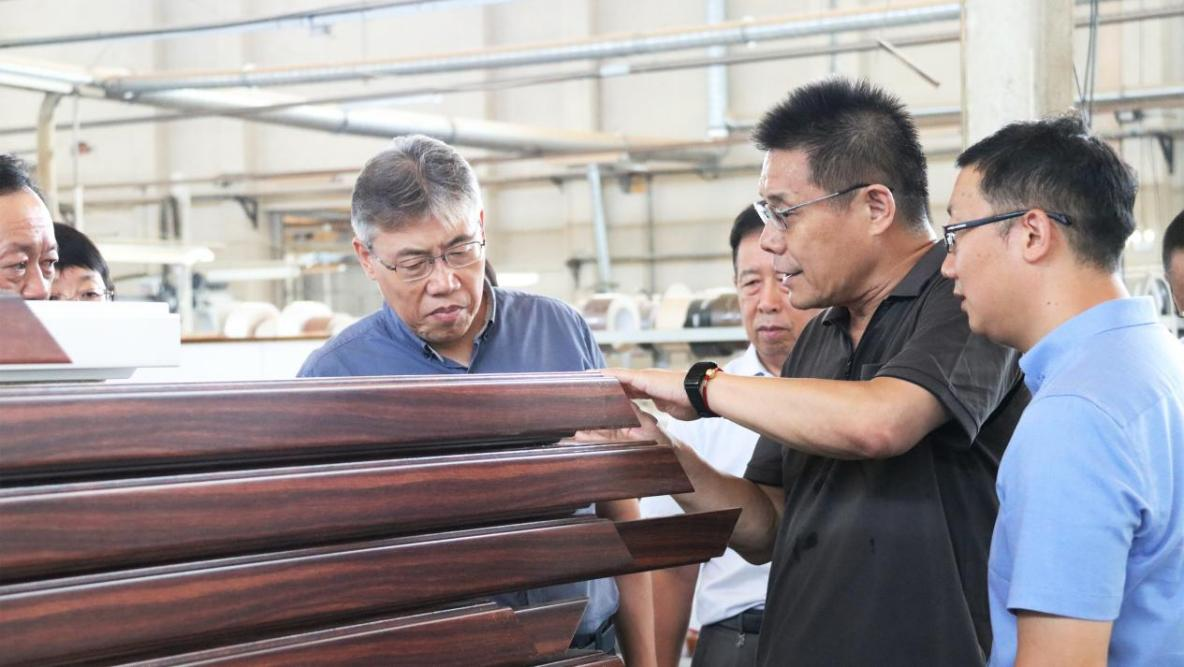 7月20日,中国林产工业协会换届工作领导小组组长、协会负责人周鸿升,协会专职副秘书长孙志刚、木门窗产业分会执行理事长张占宽、木门窗产业分会秘书长李伟光一行到访飞艇官方网站莅临交流,跟随霍尔茨总经理赵崇联、党总支书记袁健、副总经理杨旭、李松波,生产厂长方雪涛、品牌总监管玲超一同,深入工厂及展厅,近距离了解霍尔茨在创新、研发、生产等多维度的企业发展优势。