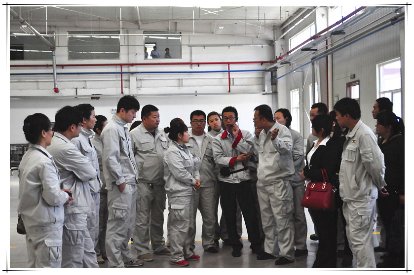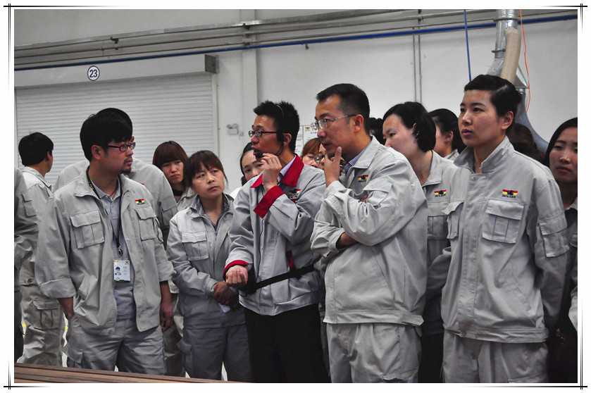 2015年5月12日,霍尔茨木门北京销售中心、渠道销售中心、工程销售中心、市场部、设计部、总经理办公室一行30余人来到霍尔茨河化分公司参加油漆门相关培训。此次培训内容为霍尔茨油漆门基础知道培训、生产工艺培训。培训由河北公司副总经理李立君主持。        李总带领大家参观霍尔茨油漆门的生产车间,据了解,霍尔茨河北新工厂筹建于2012年,占地174亩,于2014年年初正式投产。在河北工厂中看到,偌大的生产车间中,意大利比亚斯、德国豪迈、西班牙巴贝兰包覆设备、新引进的国内唯一一条最高配置意大利cefla喷图线,台湾合源等顶级大牌机器云集,令人仿佛置身一个木门一流生产线的国际展厅。从门套成型、封边到修色、喷漆,各个生产环节如同行云流水、一气呵成。