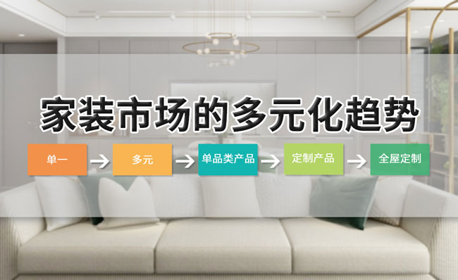 近年来,家装市场呈现出高速增长的趋势,用户需求从单一到多元方向演变,从单品类产品到定制产品,再到全屋定制遍布整个家居卖场,多元化趋势不可逆转。