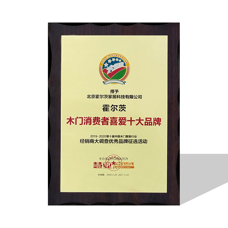 正是由于霍尔茨在产品上孜孜不倦的研发创造精神与在服务上的精益求精,获得了"木门消费者喜爱十大品牌"的荣誉,是对霍尔茨产品与服务的实名表扬,也是对霍尔茨品牌影响力与传播力的高度认可。