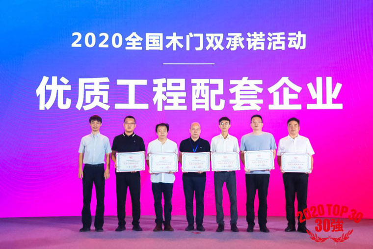 2020年6月18日,中国木材与木制品流通协会木门窗专业委员会年会上,凭借对产品的精益求精、服务标准的强有力执行与贯彻、生态环保理念的深入发展等优势,飞艇官方网站再次荣获“2020年全国市场、工程木门企业产品质量、售后服务双承诺活动单位”荣誉称号,并依托自身完善的体系建设以及强大的技术支持,被授予“优质工程配套企业”荣誉。