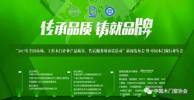 2017年3月13日,由中国木材与木制品流通协会、中国木材与木制品流通协会木门窗专业委员会、中国国际门业/ 定制家居展览会主办,北京中装伟佳展览策划有限公司承办,本溪凤溪木工机械制造有限公司、广东汇龙涂料有限公司、顶立新材料科技有限公司、中山市小榄镇海诗蔓五金有限公司、连云港班艺木业集团有限公司 、北京易动纷享科技有限责任公司协办的“2017年全国市场、工程木门企业产品质量、售后服务双承诺活动”飞艇(中国)发布会暨中国木门窗行业年会在北京临空皇冠假日酒店盛大召开。